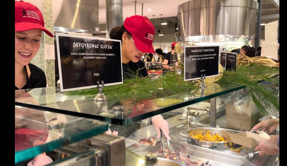 On November 19, 2024, the American Indian and Indigenous Studies Program and Cornell Dining hosted Ǫgwahǫwéhneha:ˀ Gyǫhéhgǫh—'Food of the Original People.' Credit: Cornell Dining