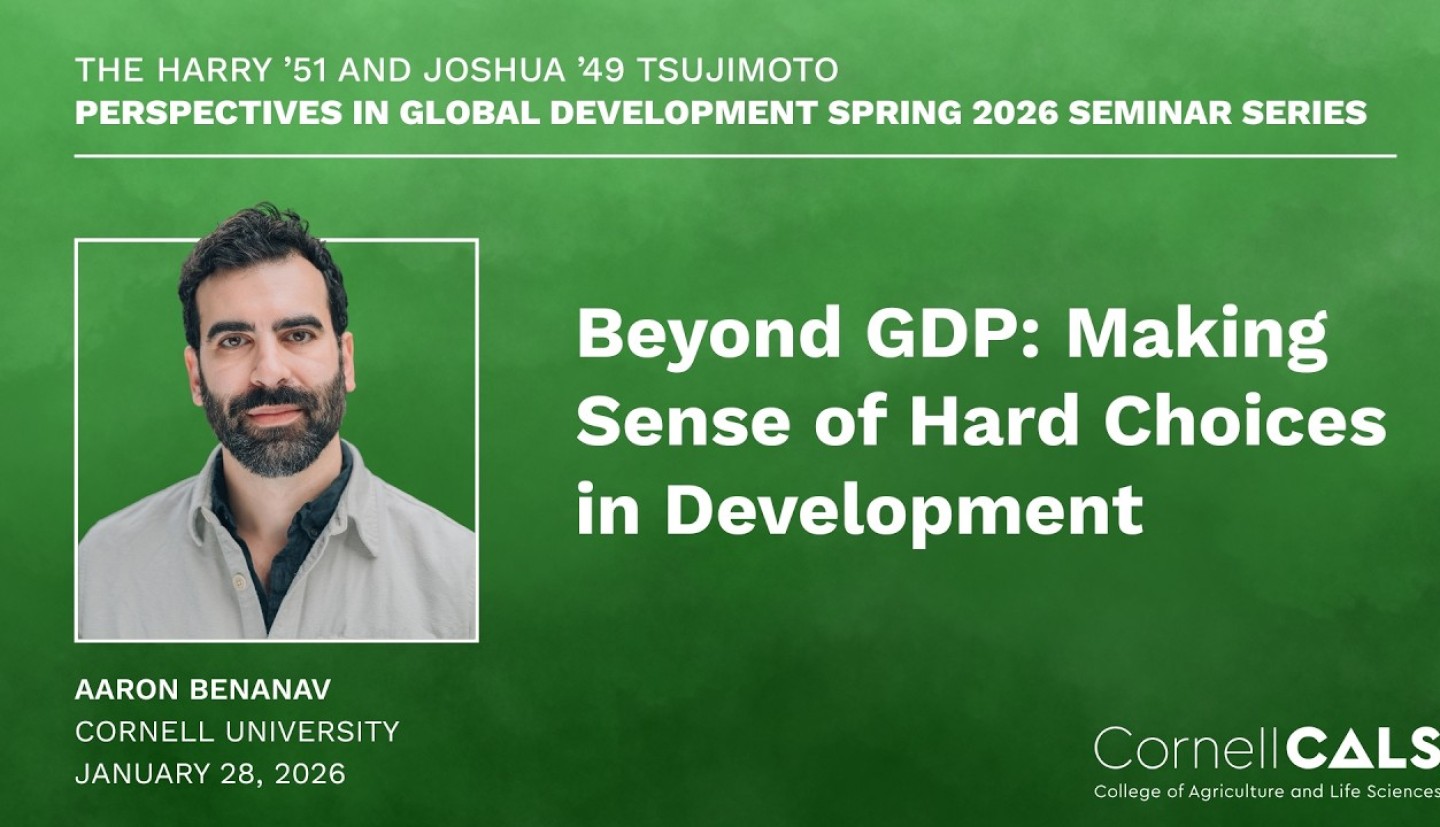 The series is co-sponsored by the Sections of Global Development and Natural Resources and the Environment and the Charles H. Dyson School of Applied Economics and Management as part of courses GDEV 4961, AEM 4961, NTRES 4961, GDEV 6960, AEM 6960, and NTRES 6960.