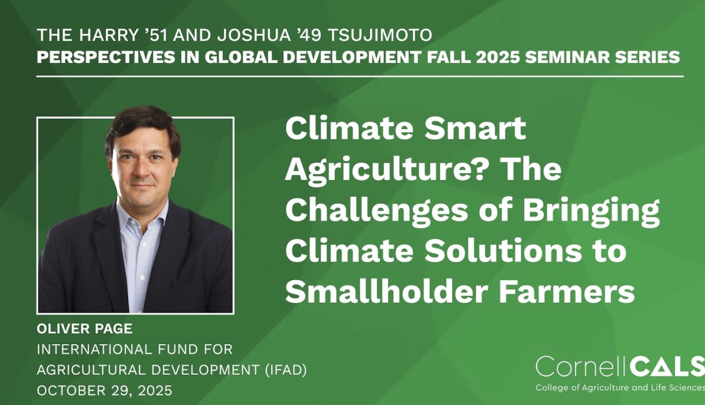 The series is co-sponsored by the Department of Global Development, the Department of Natural Resources and the Environment, and the Charles H. Dyson School of Applied Economics and Management as part of courses GDEV 4961, AEM 4961, NTRES 4961, GDEV 6960, AEM 6960, and NTRES 6960.