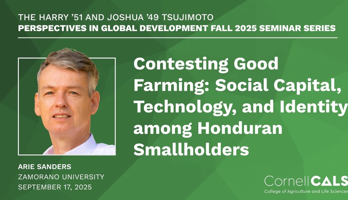 The series is co-sponsored by the Department of Global Development, the Department of Natural Resources and the Environment, and the Charles H. Dyson School of Applied Economics and Management as part of courses GDEV 4961, AEM 4961, NTRES 4961, GDEV 6960, AEM 6960, and NTRES 6960.