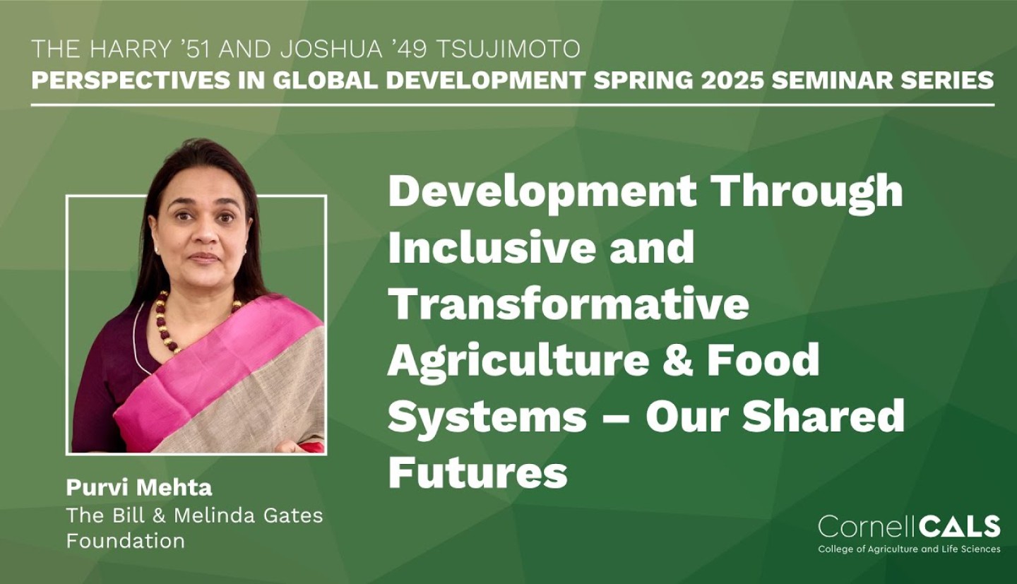 Dr. Purvi Mehta is the Deputy Director for Agriculture Development at the Bill and Melinda Gates Foundation and also leads the Foundation’s climate adaptation programs globally. She is also an adjunct professor in the Department of Global Development at Cornell University.