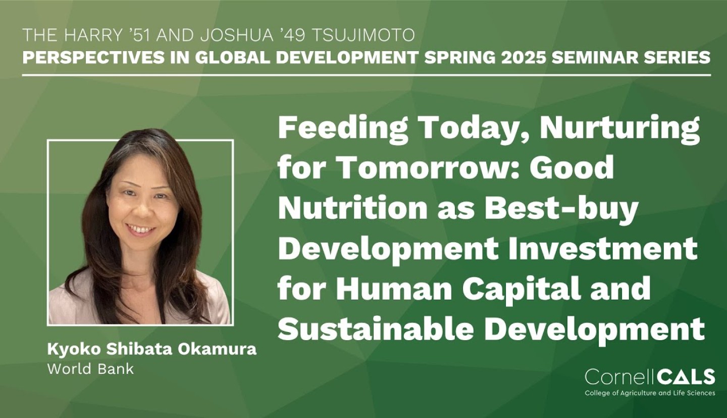 The series is co-sponsored by the Department of Global Development, the Department of Natural Resources and the Environment, and the Charles H. Dyson School of Applied Economics and Management as part of courses GDEV 4961, AEM 4961, NTRES 4961, GDEV 6960, AEM 6960, and NTRES 6960.