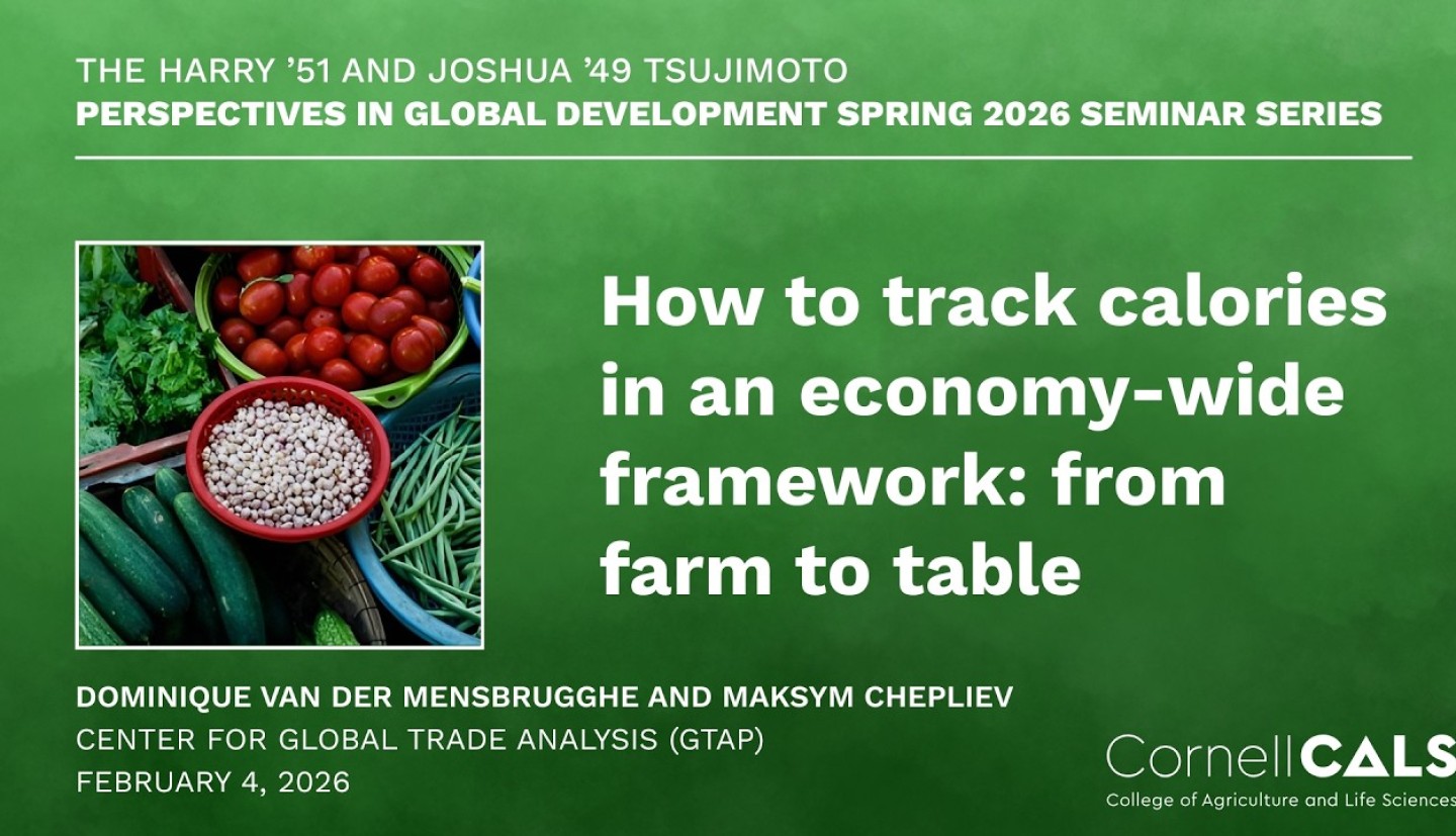 The series is co-sponsored by the Sections of Global Development and Natural Resources and the Environment and the Charles H. Dyson School of Applied Economics and Management as part of courses GDEV 4961, AEM 4961, NTRES 4961, GDEV 6960, AEM 6960, and NTRES 6960.
