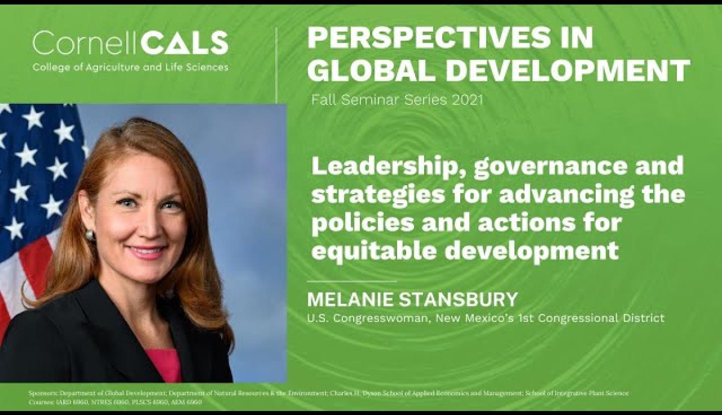 The Perspectives in Global Development seminars are held Wednesdays from 12:25 – 1:15 p.m. eastern time during the semester. The series will be presented in a hybrid format with some speakers on campus and others appearing via Zoom. Students, faculty and the general public are welcome to attend. The series is co-sponsored by the Department of Global Development, the Department of Natural Resources and the Environment, the Charles H. Dyson School of Applied Economics and Management, and the School of Integrative Plant Science as part of courses IARD 6960, NTRES 6960, PLSCS 6960 and AEM 6960.