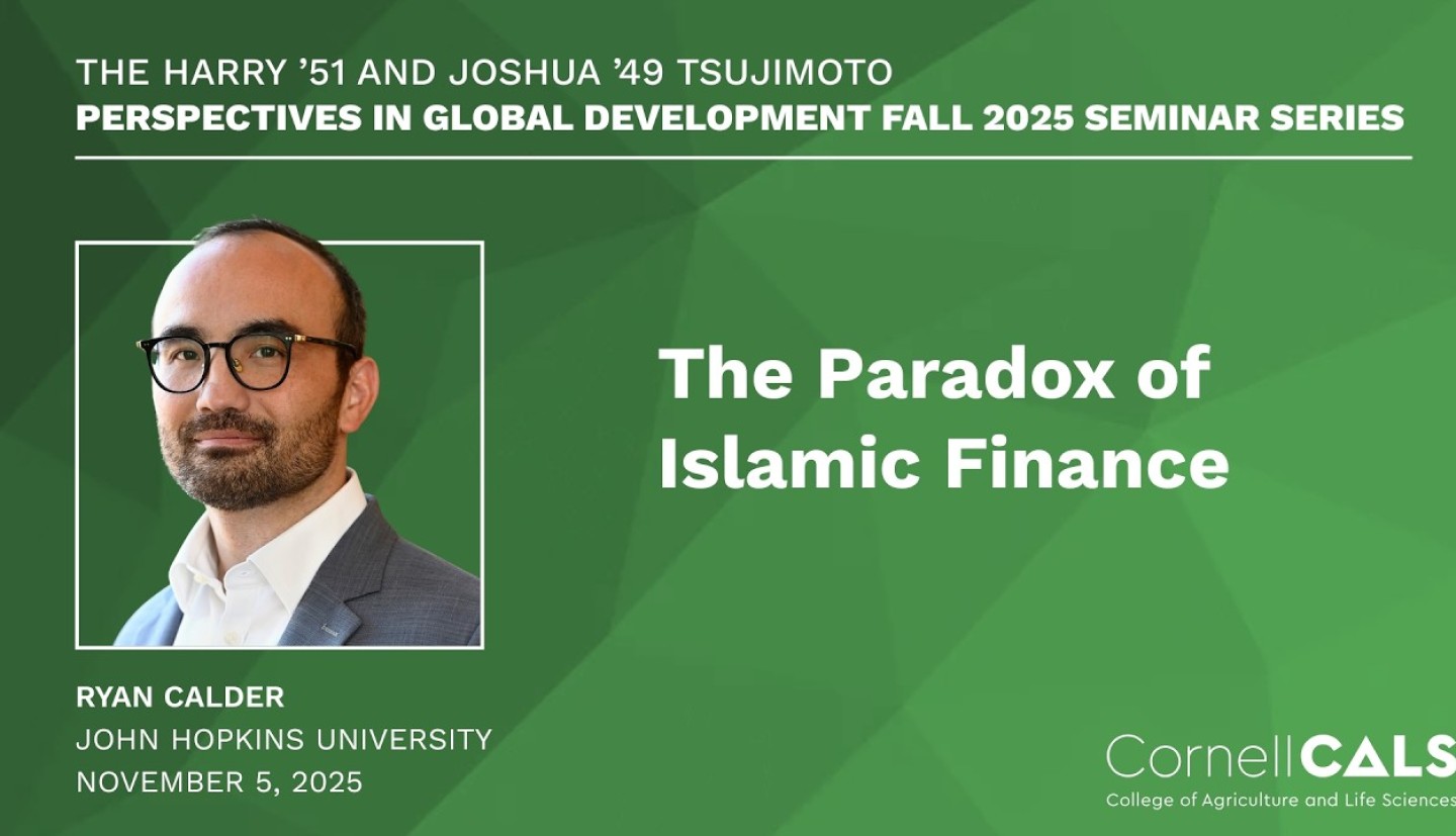 The series is co-sponsored by the Department of Global Development, the Department of Natural Resources and the Environment, and the Charles H. Dyson School of Applied Economics and Management as part of courses GDEV 4961, AEM 4961, NTRES 4961, GDEV 6960, AEM 6960, and NTRES 6960.
