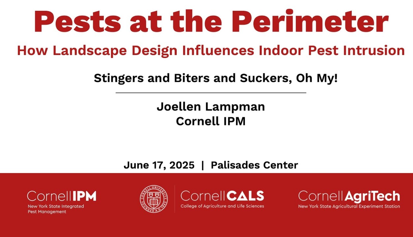 This session is part of the Cornell IPM Annual Conference: Pests at the Perimeter – How Landscape Design Influences Indoor Pest Intrusion. The 2025 conference focuses on how landscape composition and management around buildings influence the intrusion of pests. Experts will share science-based strategies to manage environments around buildings, reducing pest intrusion. This event offers practical insights for landscape and pest management, ideal for Master Gardener Volunteers, educators, pest management professionals, and community members.