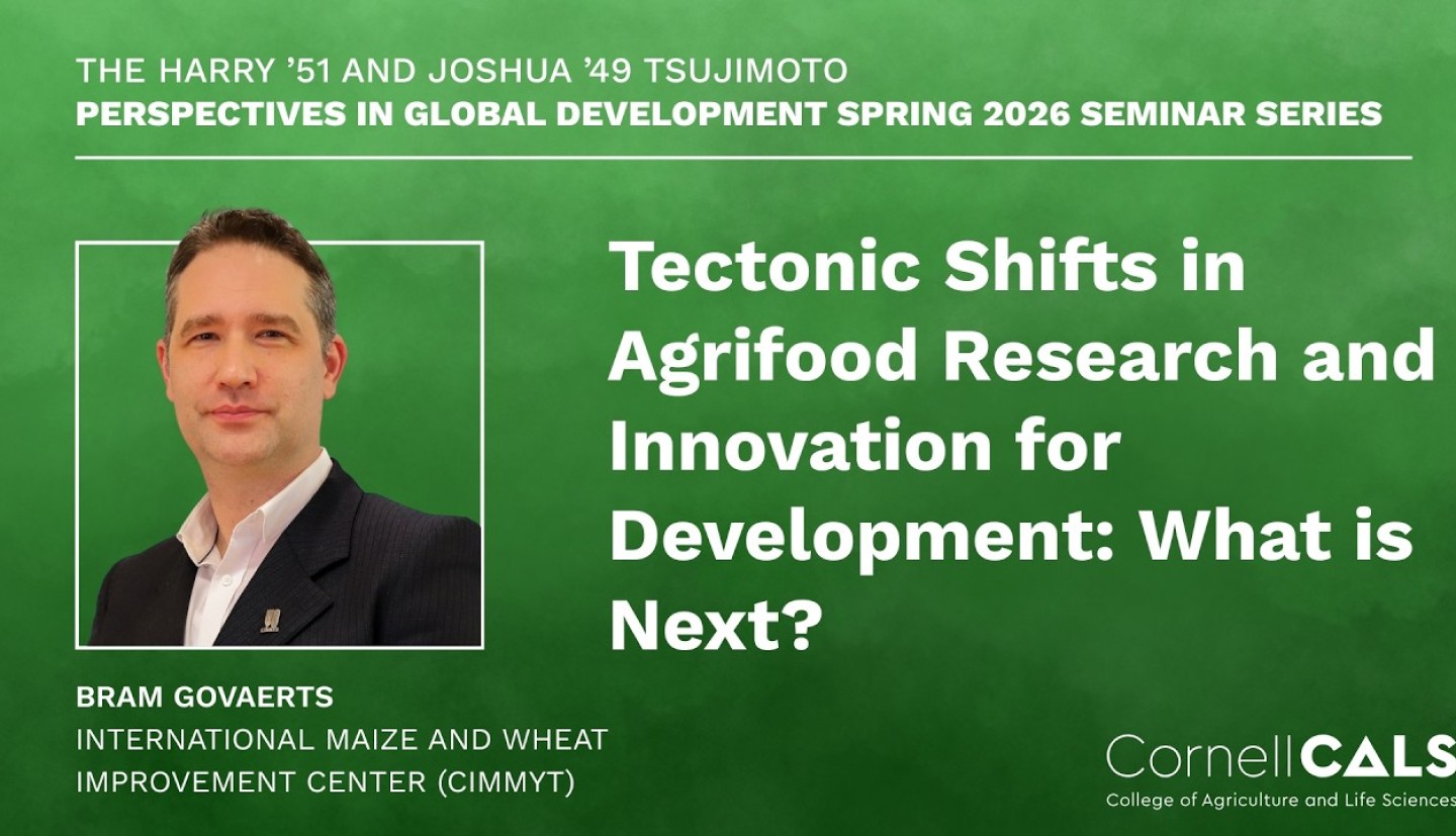 The series is co-sponsored by the Sections of Global Development and Natural Resources and the Environment and the Charles H. Dyson School of Applied Economics and Management as part of courses GDEV 4961, AEM 4961, NTRES 4961, GDEV 6960, AEM 6960, and NTRES 6960.