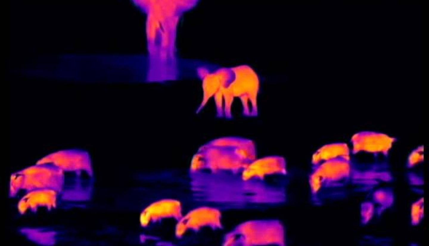 These thermal images show the antics of a baby elephant who can hear a drift of pigs moving nearby, but cannot see them in the dark - smells and sounds are his only clue. Just as when we were kids, he alternately psyches himself up, then wimps himself out and runs back to mom for reassurance.Check out more videos on the ELP’s YouTube channel.