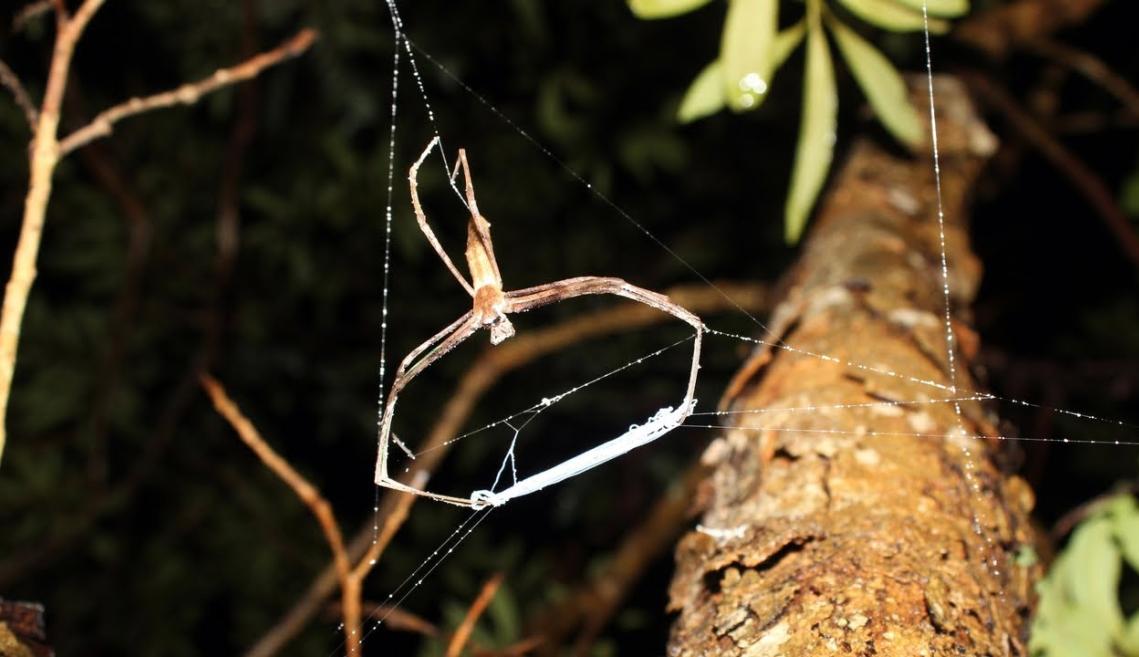 Net-casting, ogre-faced spiders (Deinopis spinosa), are nocturnal creatures found mostly in the southeastern United States. While people are familiar with spiders that create orb webs, this species makes personal, fuzzy webs – like small nets – and uses the strong, sticky silk like a baseball glove, according to Hoy.